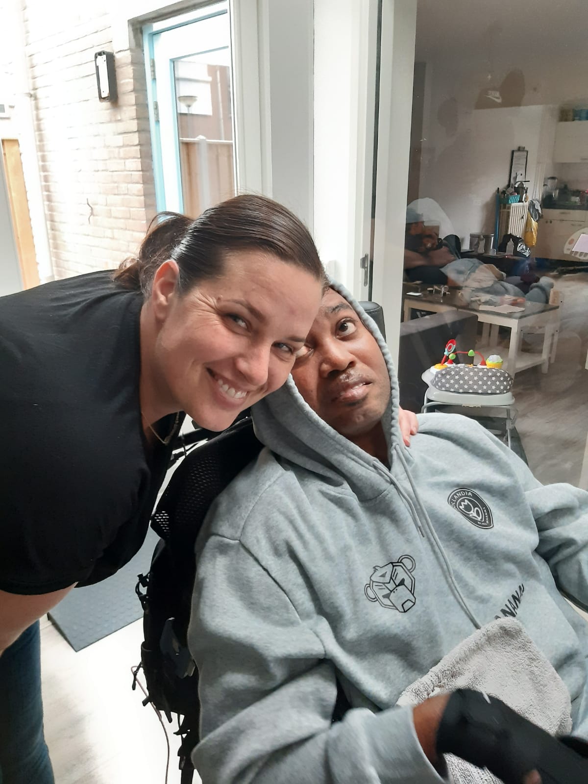 Sharon en Aldrin hebben een aantal jaar een relatie, waarbij ze erg genieten van hun grote liefde voor elkaar. Ze hebben een dochtertje van 10 maanden als Aldrin in 2019 een hartstilstand krijgt. Als gevolg hiervan heeft hij ernstig hersenletsel en is hij niet volledig bij bewustzijn gekomen. Sinds ruim een half jaar is hij weer thuis bij zijn gezin. Op weg naar Lelystad voor dit interview ben ik me er erg van bewust dat Sharon deze autorit van bijna 1,5 uur heen en terug minimaal vijf dagen per week heeft gemaakt. Aldrin kan zelf niet deelnemen aan het gesprek, maar is wel aanwezig. Sharon en ik kijken samen terug in een open gesprek op de heftige periode die zij heeft doorgemaakt.